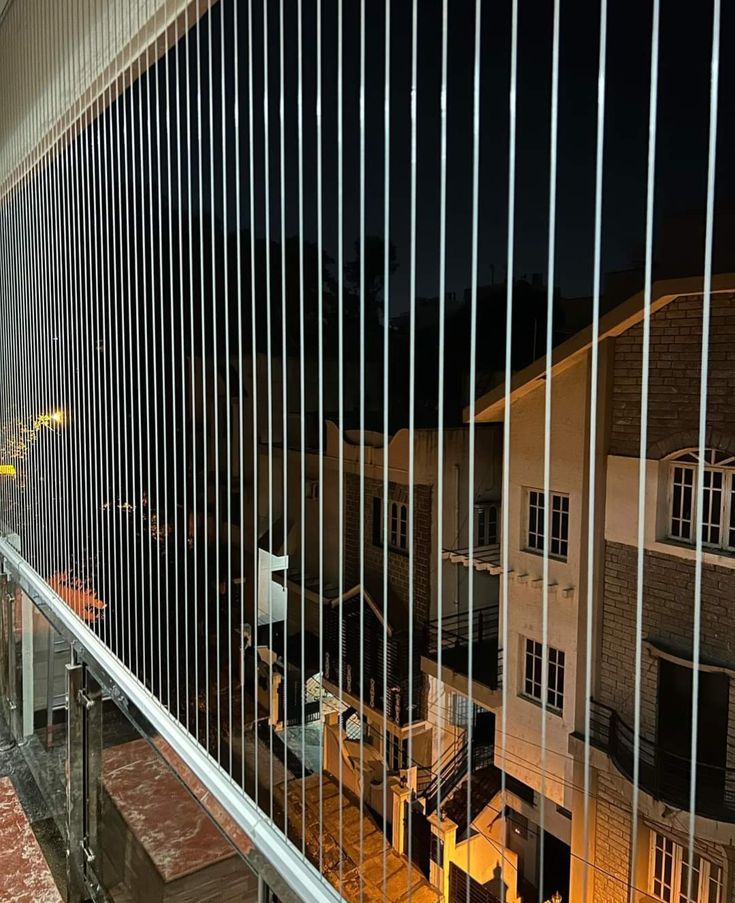 Stainless steel invisible grills are a modern safety solution made from high-tensile steel wires, commonly using SS 304 or marine-grade SS 316 for enhanced durability and corrosion resistance. These grills are designed to provide maximum safety without blocking the view, making them ideal for high-rise apartments, balconies, windows, and staircases. The wires are typically 2 mm thick and spaced 2 to 4 inches apart, offering protection for children and pets while maintaining an open and elegant appearance. Coated with nylon or protective layers, the stainless steel cables are weather-resistant and low-maintenance, making them suitable for both indoor and outdoor use. Installation involves fixing the cables into durable aluminium or stainless steel tracks mounted on the top and bottom of the opening. The wires are tensioned tightly to form a secure barrier without altering the building’s structure. These grills are customizable in layout—either vertical or horizontal—and can include safety features like quick-release sections or alarm systems. With their sleek and minimal look, stainless steel invisible grills blend well with modern architecture, offering a combination of safety, durability, and visual appeal.